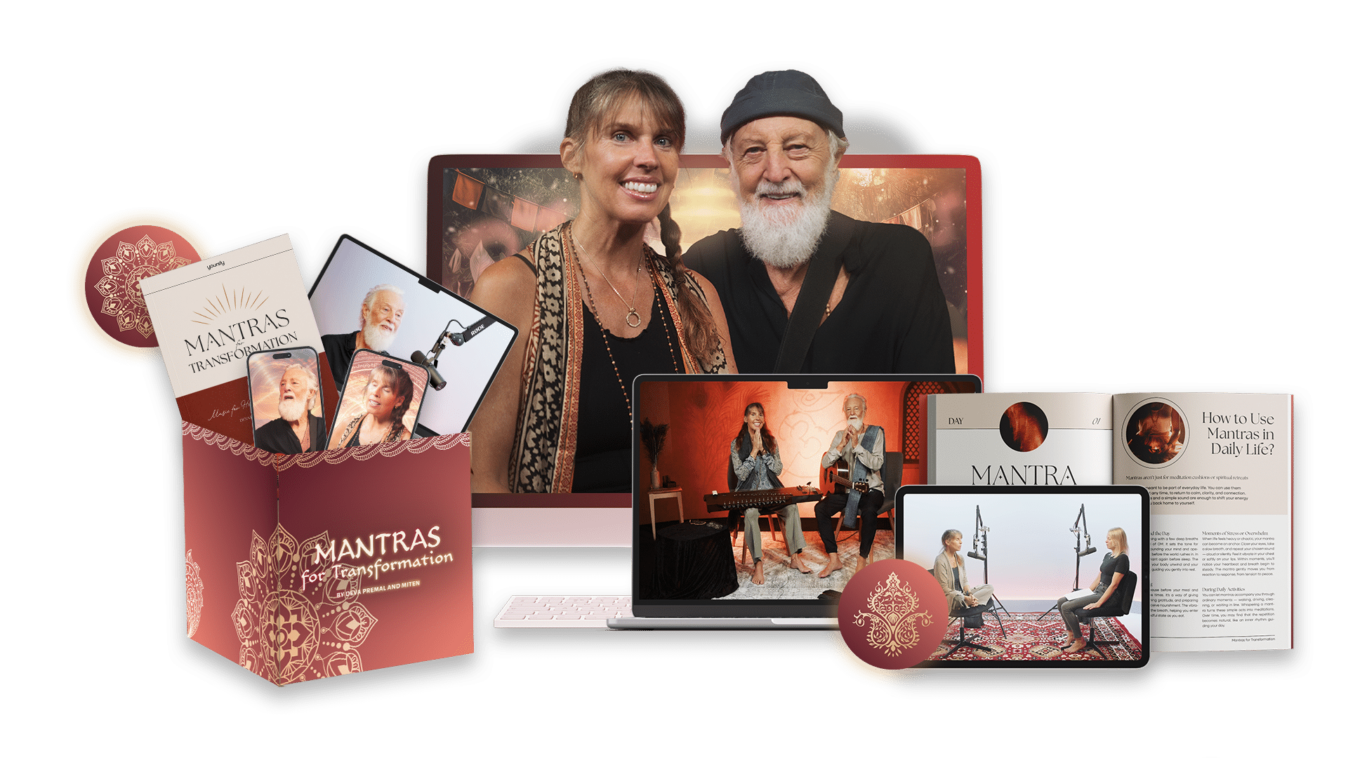 und beinhalten Live-Calls mit Deva & Miten persönlich, erweiterte Mantra-Zyklen und vieles mehr.